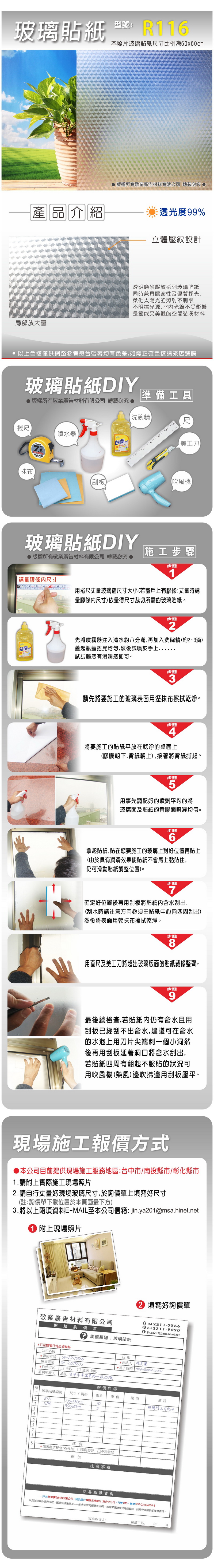 玻璃貼紙-R116系列 每卷:寬度/120cm,長度900cm $2400/卷 $25/才 ◆零售基本才數12才
